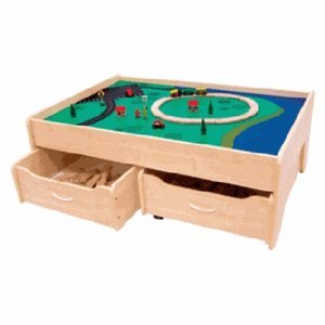 KidKraft Train Table with optional Organization Drawer. Gives your little tyke a place to play with and store their toys! Yeah, it's called a "Train Table", but it provides a big, sturdy area for your little one to play with all their toys! The large 35 x 49 1/4" surface is the perfect place to build a railroad, but it's also ideal to use as just a general play area, too! Toy cars, action figures, puzzles, coloring... it's a great stage to showcase your child's imagination! The table comes with a landscaped playboard detailed with silk-screened landscaping and a reversible flip side. Sitting 17 1/2" off the ground, your child can plant themselves on the floor and play with their toys without damaging floors or carpets. And for a little organization, pick up KidKraft's Trundle Drawer that fits perfectly under the Table and withstands years of rough use! Table: Special "T-molded" edges prevent chipping; Curved edges for safety; Easy to assemble; Sturdy construction; 1 1/2" lip to keep toys on the Table; Drawer: Generous 10" deep drawer stores plenty of toys and large play pieces; Heavy-duty rope handle; Smooth-rolling caster to allow for easy and effortless access; Sturdy construction; Measures 32 x 23 1/2 x 10" h. Give your child's imagination a home! Pick yours and State Color. Order Today! AVAILABLE SEPARATELY: KidKraft Trundle Drawer; KidKraft Train Table, White; KidKraft Trundle Drawer, White - word search in our store for 'KidKraft'. KidKraft Train Table and then update cheapest prices immediately. Limited time Only!