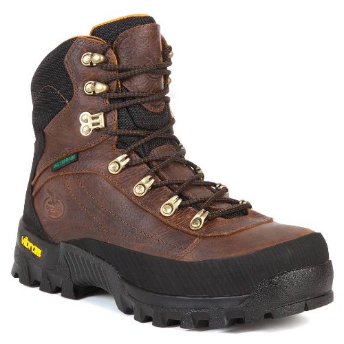 Offering safety, comfort and durability, Georgia Boots make some of America's hardest working footwear. The Georgia Boot Men's Crossridge Steel Toe Waterproof Work Boots are crafted with a hiking boot inspired waterproof leather upper that is easy to maintain and looks good enough to wear into town if you wash the mud off. Rubber toe and heel bumpers resist abrasion in high wear areas. A PU footbed cushions your feet for long days on the jobsite and a Vibram rubber outsole gives you dependable traction on any terrain. ASTM-rated for electrical hazard and toe protection, the Georgia Crossridge Steel Toe Waterproof Work Shoes for men will keep you safe so you can focus on the hard work at hand.