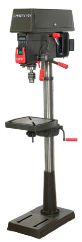 The Palmgren 15-Inch floor model drill press features a heavy cast iron base, column collar, work table, and head. Work table height is adjustable using rack and pinion mechanism. Table can be tilted 45-Degree both right and left, and rotates 360-Degree on a vertical axis. Work table surface is precision ground and features T-slots for secure, accurate mounting of work piece and also a coolant trough. Digital readout displays spindle depth and spindle RPM. Other features include an enclosed ball bearing quill assembly, quick belt change and tension mechanism, positive quick adjust feed depth stop and a 1/2HP, 1725 RPM motor. 5/8-Inch Chuck and self-ejecting key are included. 16 Spindle speeds range from 138 to 3476 RPM for drilling steel, cast iron, aluminum, wood, and plastic. and then update cheapest prices immediately. Limited time Only!